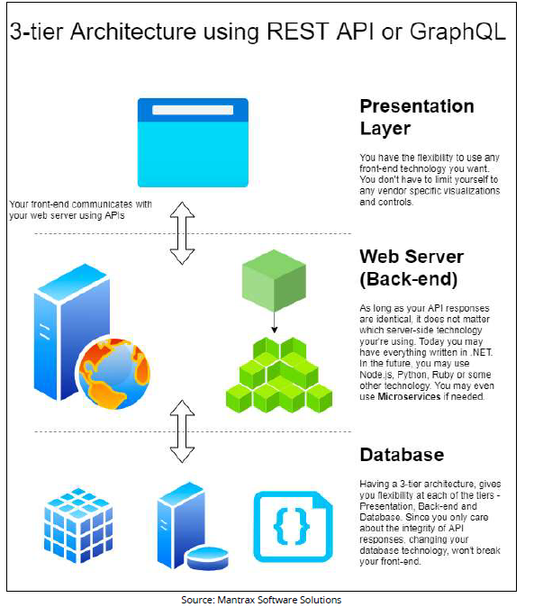 Most BI tools look very good out-of-the-box but you’re somewhat constricted to what you can do with them if creativity is your second nature and your users need a lot of customization. If you checked any of those two boxes, a custom dashboard is probably what you need to settle on, specifically, a three-tier architecture.